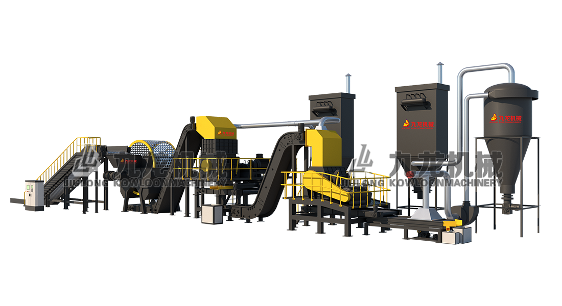 4.鋼絲分離機(jī):使橡膠和鋼絲分離,并加工成膠粒(10mm-20mm)。